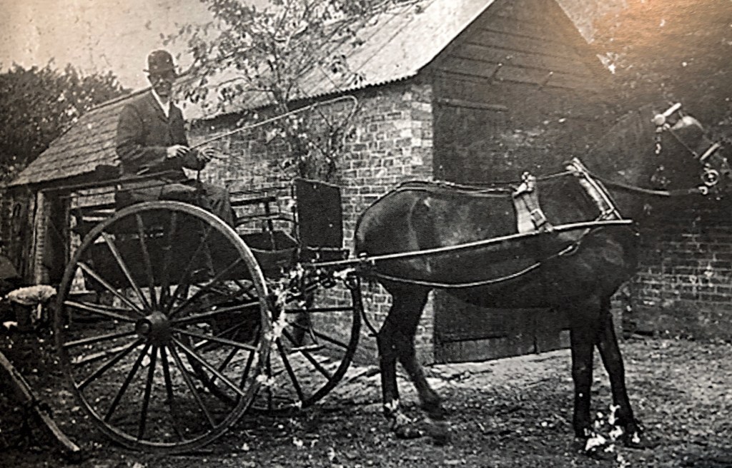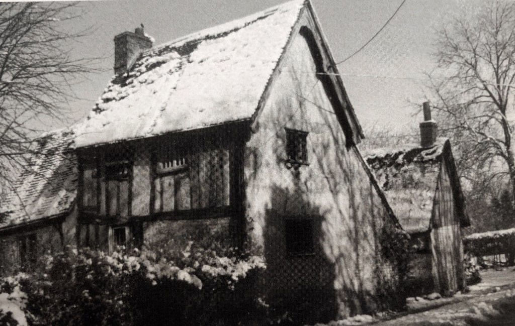 The Coop in the 1980s and 125 High Street as it looked in 2009. (Drag the slider in the middle to see how the two views compare.)Sheep passing down the High Street near the end of Bowers Lane. The old George and Dragon pub sign can be seen in the background. The George and Dragon was first licensed as an unnamed beerhouse in 1869. It was owned by Saint Neots brewer William Paine. In those days Bowers Lane was called Brick Yard Lane.The old George and Dragon at the end of Bowers Lane closed in the late 1950s and became the home of Henry and Cis Waldcock. Henry had a forge in the outbuildings.A US Airman on his bike, and a local Jock Westley on his horse, taken during WW2 at the Bowers Lane junction.135 High Street is probably the oldest house in North Bedfordshire. It was constructed in about 1480 as a ‘one up one down’ dwelling. This snowy picture shows some of the timbers. The stoat oak box frame is an unusual structure in this area.This is the side view of 135 High Street showing the mullion windows. The house was renovated in 1722 and in 1990 an extension was added. More recently the house has been coated with fresh lime and ferrous sulphate to retore it to its original splendour.A winter’s scene with 149 High Street in the background. The group on the road are probably taking a stroll after church in their Sunday best clothes. 149 High Street was built in 1873. The manager of the brickyard, W Bailey, lived there.Betsey Fairey with her lace cushion outside her home, Whitegates, now 153 High Street. The glass globe on the right, filled with water, magnified and concentrated candle light on to the lace cushion.An American B-17 Flying Fortress from 303 Bomb Group based at Molesworth crashed behind 170 High Street on 14th October 1943. The crew survived and returned the next day to collect their belongings. The film stars Clark Gable and James Stewart were with the 303 Bomb Group at that time – maybe they made a visit to Riseley!?170 High Street in the 1950s painted by Charles Brooks. an artist and a village postman. It was behind this house that the B17 Flying Fortress crashed, scattering wreckage into the old brickyard.Joseph Gell, the gamekeeper, outside Porter’s Lodge. This picture shows the original gates of the Riseley entrance to Melchbourne House, the home of Lord St John.