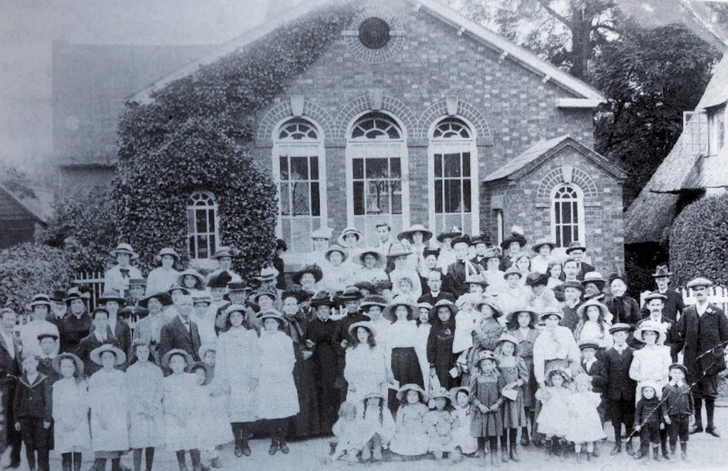 101 High Street, now known as Swan Cottage, was the home of Charles Dunkley, the village thatcher, who stored his materials in the barn beside the house. (Drag the slider in the middle to see how the old and new two views compare.)105 High Street , the home of John (Cub) Westley who ran the livery stables in what is now Hunters Yard.The Royal Oak Pub, now 107 High Street.The Royal Oak Pub in the early 1900s. Samuel Rootham was the occupier of the pub then and is probably pictured here. Records show the pub was operating in 1792. It closed in the 1990s after 200 years of serving the local community. 109 High Street, now called Millbrook House is next to the Royal Oak pub site.This was the home of Frank Felce and was once a shop selling confectionery and groceries. The Felce family farm in Riseley to this day.Frank Felce at the rear of 109 High Street.110 High Street, Timbers, dates from at least 1630.The Moravian Chapel in the 1920s. The Moravian congregation. Services were held on this site from around 1745. The old chapel was demolished in 1810 and the new one built, with new front added in 1862. The new front had a door on both sides, the left door for men and the right for women. The chapel closed in 1966 and after some time became an Art Gallery. It is now a private house.A Moravian tea party in the 1920s held in Great Crooks field opposite 105 High Street. The field was part of what is now Paulson’s Close which was built in 1965.Ivy lodge, 118 High Street, the photo was taken when the name was appropriate.Ivy Lodge with the ivy cladding long gone. Roger Evans, the local thatcher, is working on the new thatch. His signature acorn mark can be clearly seen. Hall Cottage, for many years the village Post Office run by Mrs Edit Westley pictured here.Betty Nicholls and Margaret Rootham outside the Co-op in the late 1940s. This has been demolished and replaced by 125 High Street.