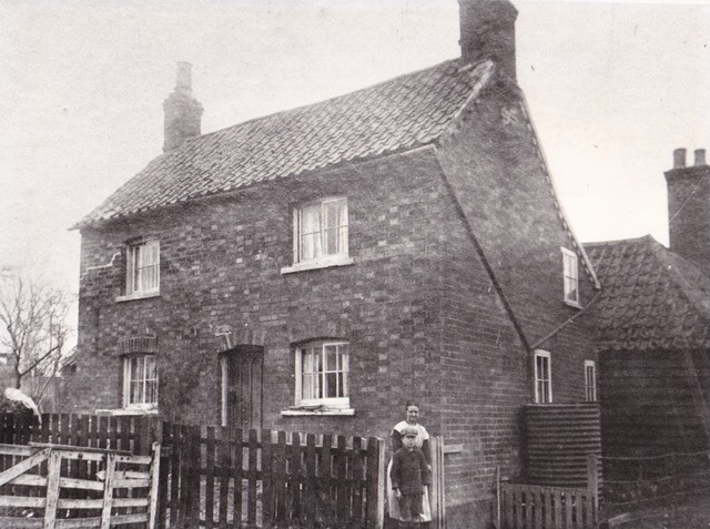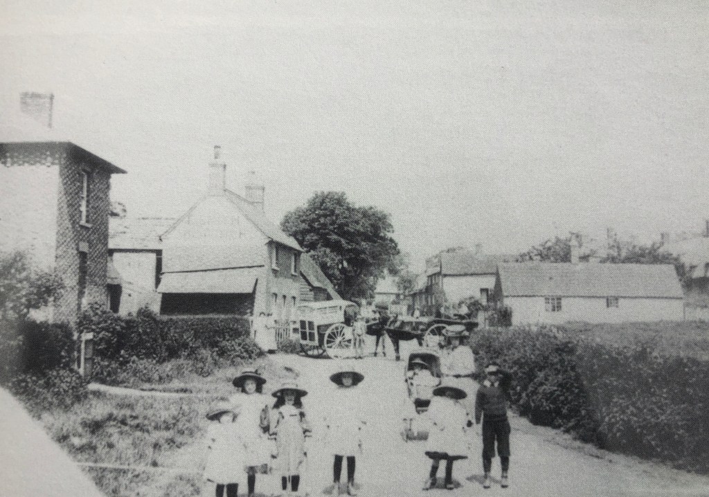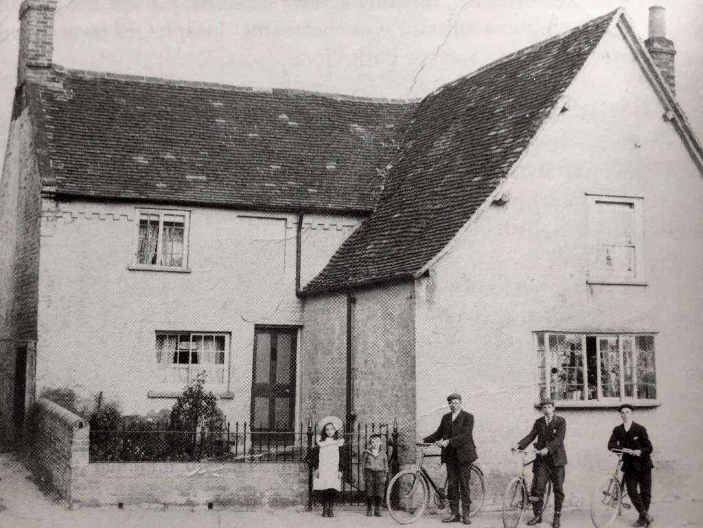 As you cross College Drive and look down the road Appletrees, number 29, is on the right. It used to be the Butcher’s house and shop. William Wyant was the Butcher from 1896 to 1937 and before him it was George Barker.Built in 17th century 26 High Street, on the left, was known as ‘The Cottage’ until the 1940s. In 1880 Dr Banks lived and worked there. His daughters Ella and Clara are pictured in front of the house. From 1940s it was the home of George Stokes who was the village gamekeeper.