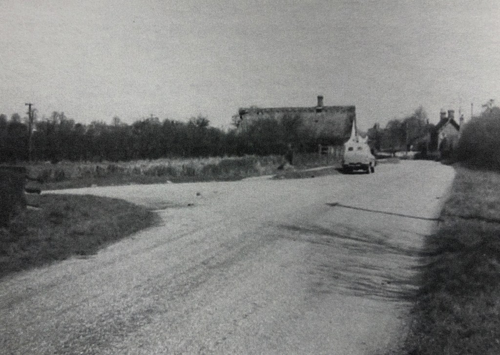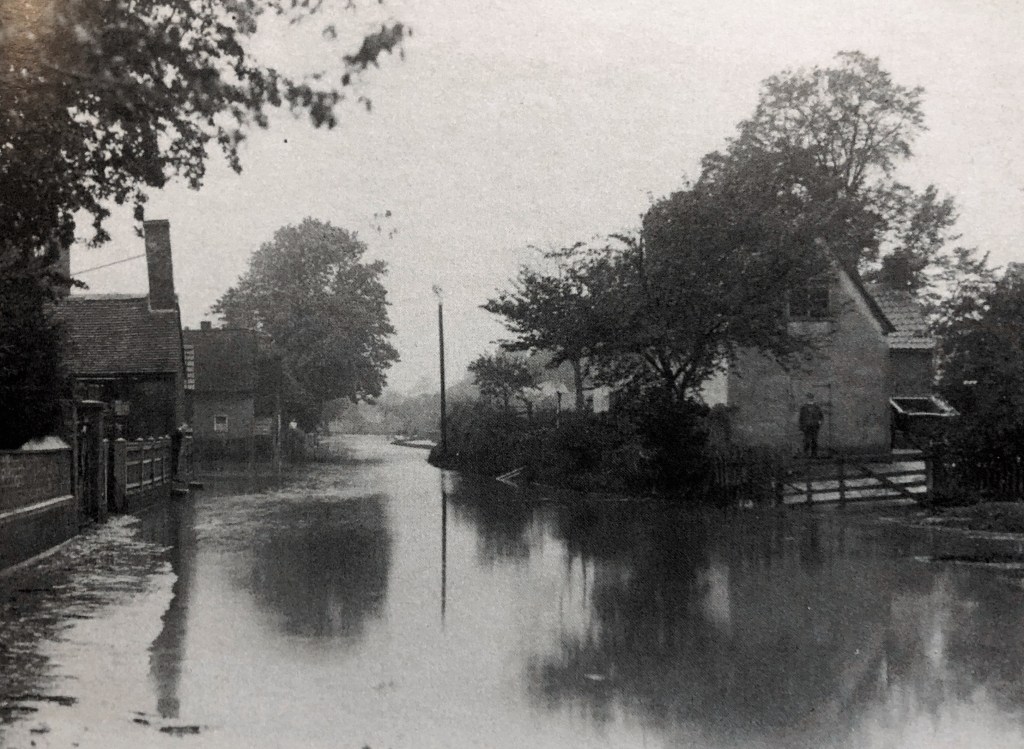 Prince Edward leaving Brook House for the Point to Point Races.The back of Brook House, 72 High Street. During World War 2 many families were housed there in flats, it is now a Residential Home.A keen kayaker making the most of the floods outside Brook House in 1992.This is Jack Wesley riding his horse Simon through the flood past Brook House in about 1960. In the background is Mrs Seebon leaning against the fence outside her shop, the Bakery. Andrew and Nigel Gell are looking on with their friends.A red phone box, by the bridge across the brook to Ross Meadow.The view in the 1950s from the bridge in the previous picture across what is now Ross Meadow towards Field House, the vicarage and the church. Painted by Charles Brooks.Field House, 59 High Street, hidden from the High Street up the drive beside the bridge across the brook.May and Margaret Valentine from Field House playing in the fields that are now Ross Meadow in the early 1900s.A marooned gentleman at Rosebank, 57 High Street, one of the oldest houses in the village dating back to beyond 1745. This date is on one of the dormer windows, but it is thought the house pre-dates this. Watch out for the free range chickens as you pass these days.This picture dates from 1920s or 1930s. You can see the petrol pump outside the smithy and also the Bakery on the left where the mother and child and are standing. The Rosebank chickens were running free then too.The village smithy at number 62 on the left has been there since before 1900. Alfie Pentlow bought the business in 1917 and created a thriving concern. Alfie’s son Ted took over the business and Ted’s son Bob followed him. This picture was painted by Charles Brooks in the 1950s.