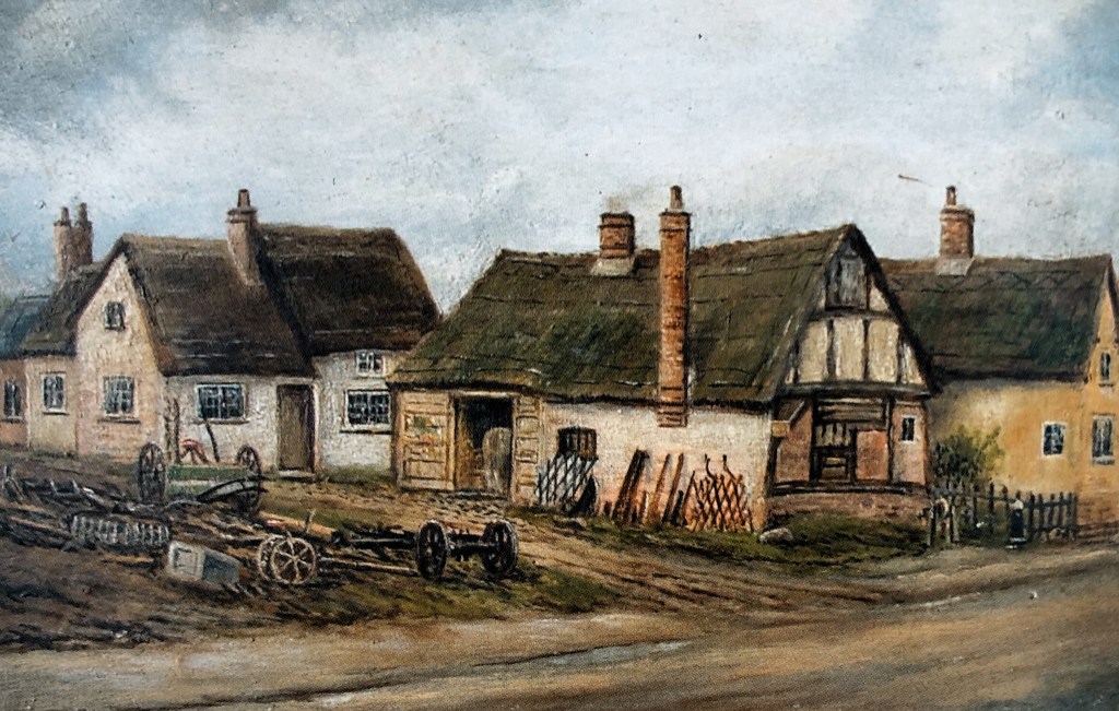 The cottages at 12-18 High Street date back to the 17th century. Use the slider to compare the old and new.On the left is Town Farm, this picture is circa 1920. The farm barns between the house and Lowsdon Lane have now been converted into houses.Henry Waldock and his wife Cis enjoying the warmth of the fire with their faithfully dog at Town Farm in 1930s.A Land Girl helping out at Town Farm during World War 2.The view looking up Lowsdon Lane painted by Charles Brooks in the 1930s. The two houses on the right are numbered 6 and 8 High Street. Both the houses and the barns on the left have been much developed over the years.Arthur Ball and his mum outside number 8 High Street, the second house up Lowsdon Lane, in the late 1930s.People outside the White Horse pub, opposite Lowsdon Lane, possibly for an outing.Agnes Beeby ran the White Horse in the 1920s with her husband Horace. She reported that summer trade was ’18 gallons per week with a tap-room, bar parlour and closed on Sundays’.Looking back up the High Street towards the centre of the village the White Horse pub is on the left with Town Farm and the Lowsdon Lane turning on the right.Playing bowls on the Riseley Bowling Green next to the White Horse. The White Horse is in the centre background.Rosemary Cottage or 1 High Street was demolished in the 1960s. It was the home of Joseph (Dossie) and Rhoda Dickens.The Sharnbrook turn in the 1960s before the demolition of 1 High Street, in the centre, and the construction of three bungalows.